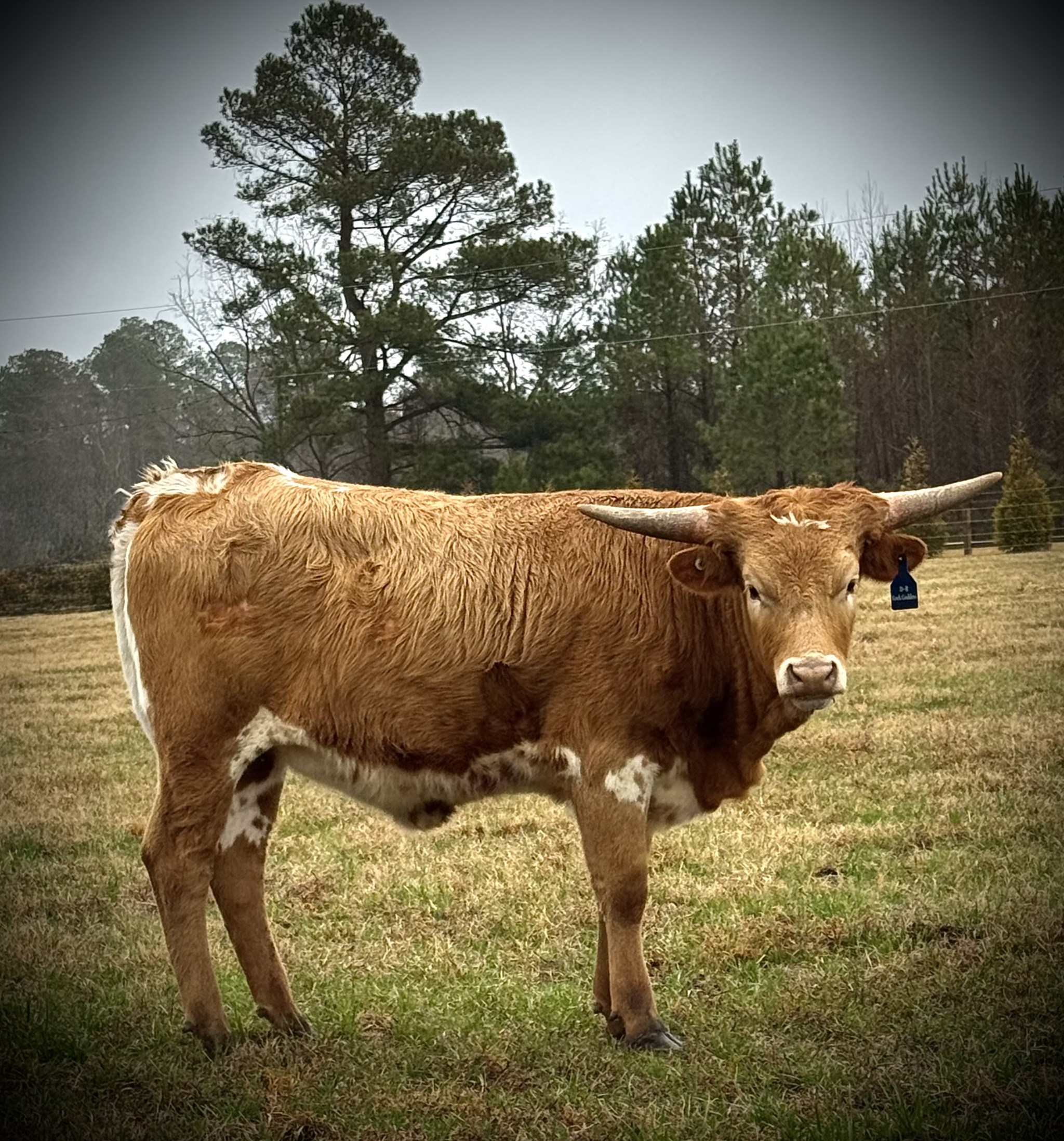 Beautiful heifer sired by the 2025 World Record 109” TTT and 132” Total Horn Bull, WT Kid Rock. Excited to bring these great genetics to our herd!
